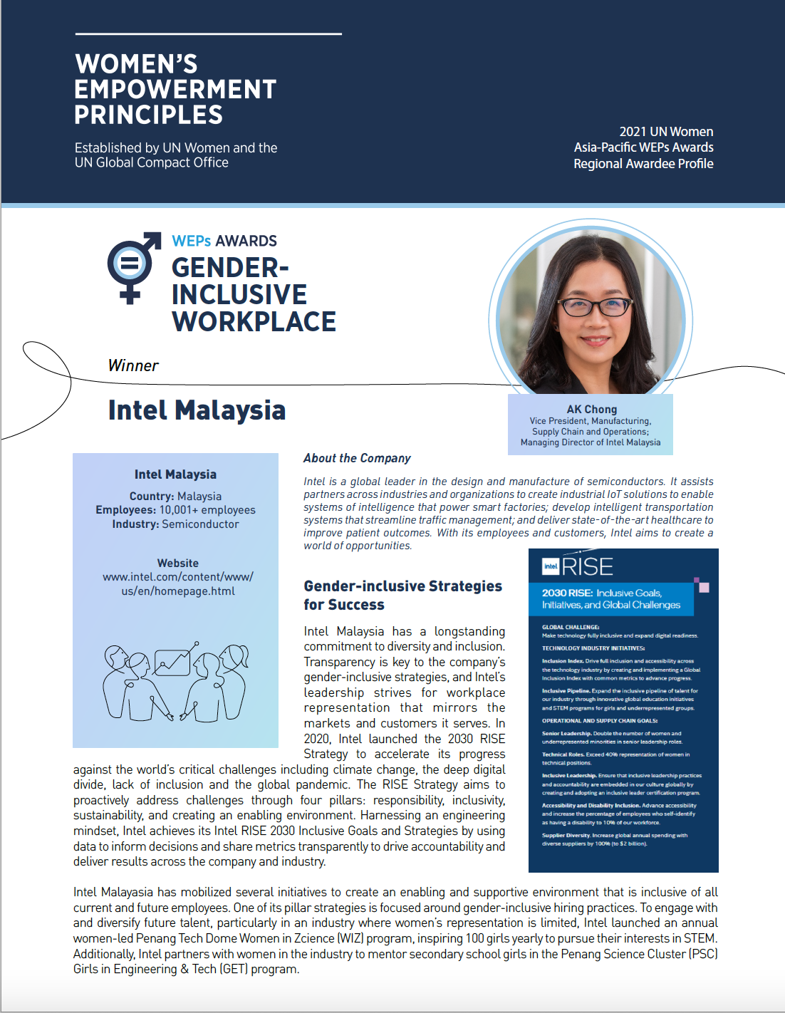 Read this Asia-Pacific WEPs Awards Regional Awardee Profile to learn more about the 2021 Gender-inclusive Workplace Winner, Intel Malaysia.