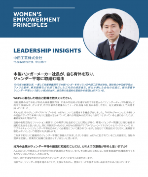 Shuhei Nakata, President of NAKATA KOGEI Co., Ltd., an SME in Toyooka-City in the western region of Japan, sees the WEPs as an effective framework to advance business practices. Toyooka-City is known for its strong commitment to the SDGs, especially SDG5. Mr. Nakata works together with the municipality in building a sustainable and inclusive city.